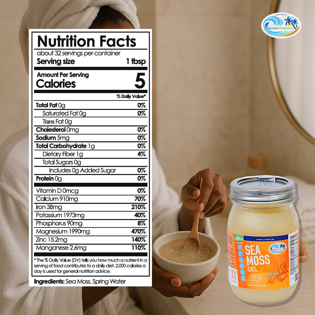 Sea moss gel provides your body with zinc, sulfur, and iodine, promoting skin health from the inside out. These nutrients help boost collagen production, improving skin elasticity, making it firmer and reducing the appearance of fine lines. Sea moss also has anti-inflammatory properties, helping to calm skin irritations like acne, eczema, and psoriasis by reducing inflammation. Its high antioxidant content helps fight free radicals that contribute to skin aging, protecting the skin from damage and promoting a more even skin tone.