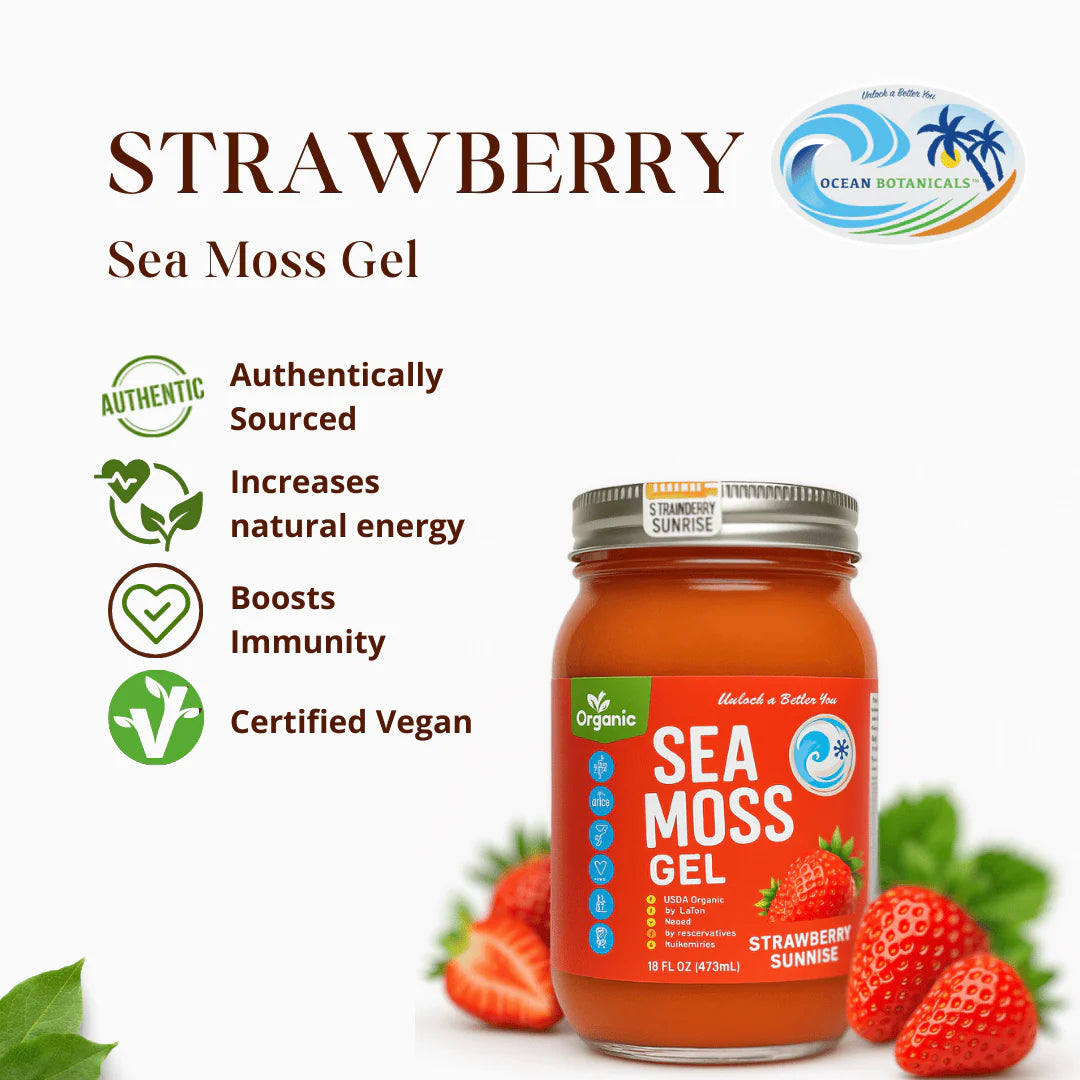 Strawberry sea moss gel combines the benefits of wildcrafted sea moss with the natural flavor of real strawberries. It's